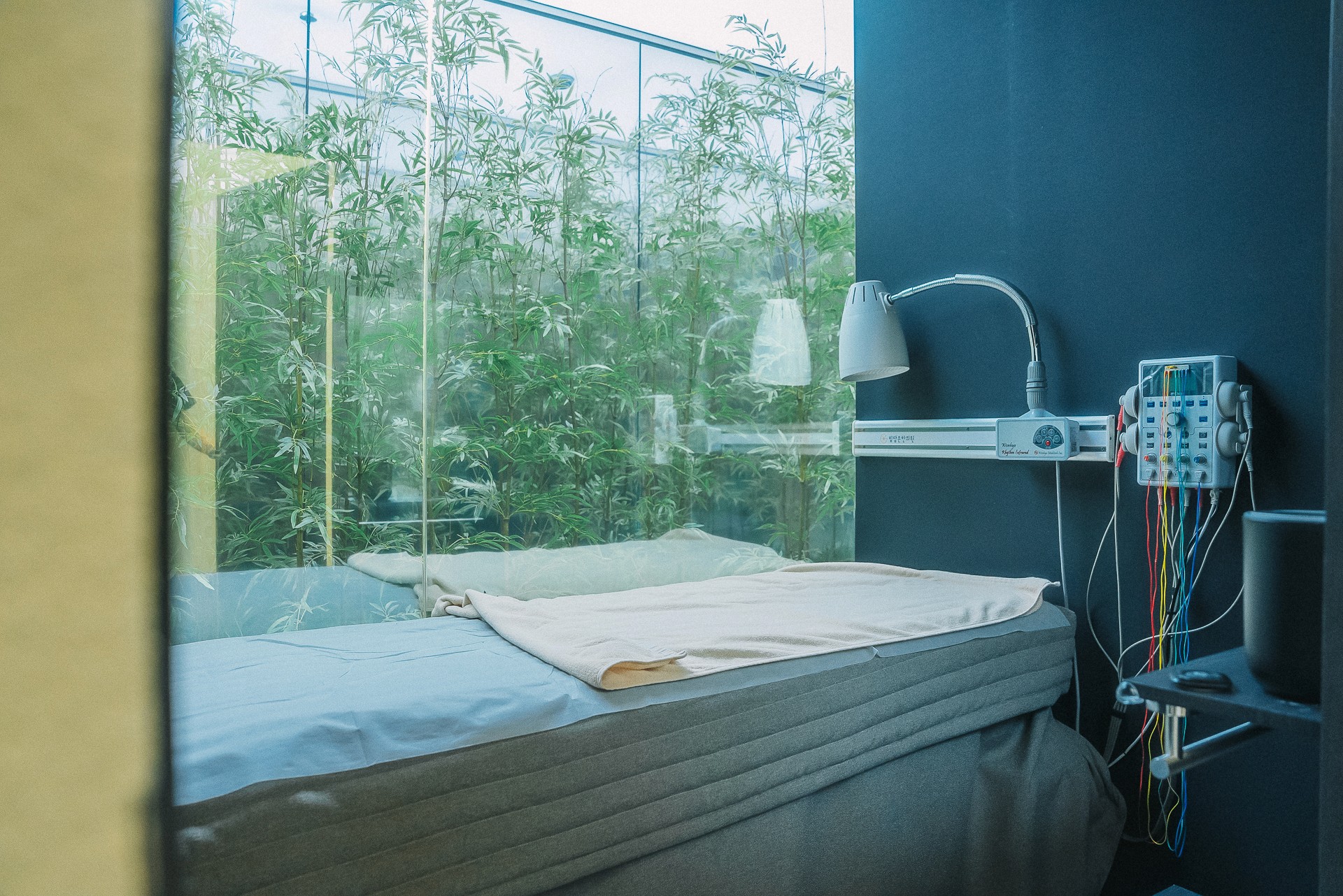 프라이빗 1인 치료실과 창 너머로 펼쳐지는 대나무숲,